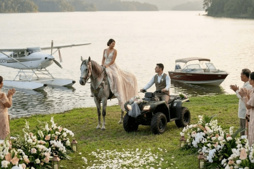 From the bride gliding across the river to the groom’s adventurous ride, our dramatic entrances turn your wedding into a cinematic experience.