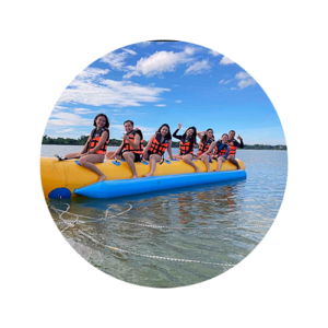 Get ready to bounce and laugh with our banana boat! This fun-filled adventure is a sure hit for big groups. It's a rollercoaster ride so make sure to hold tight as you glide, twist and turn on splashing waves!